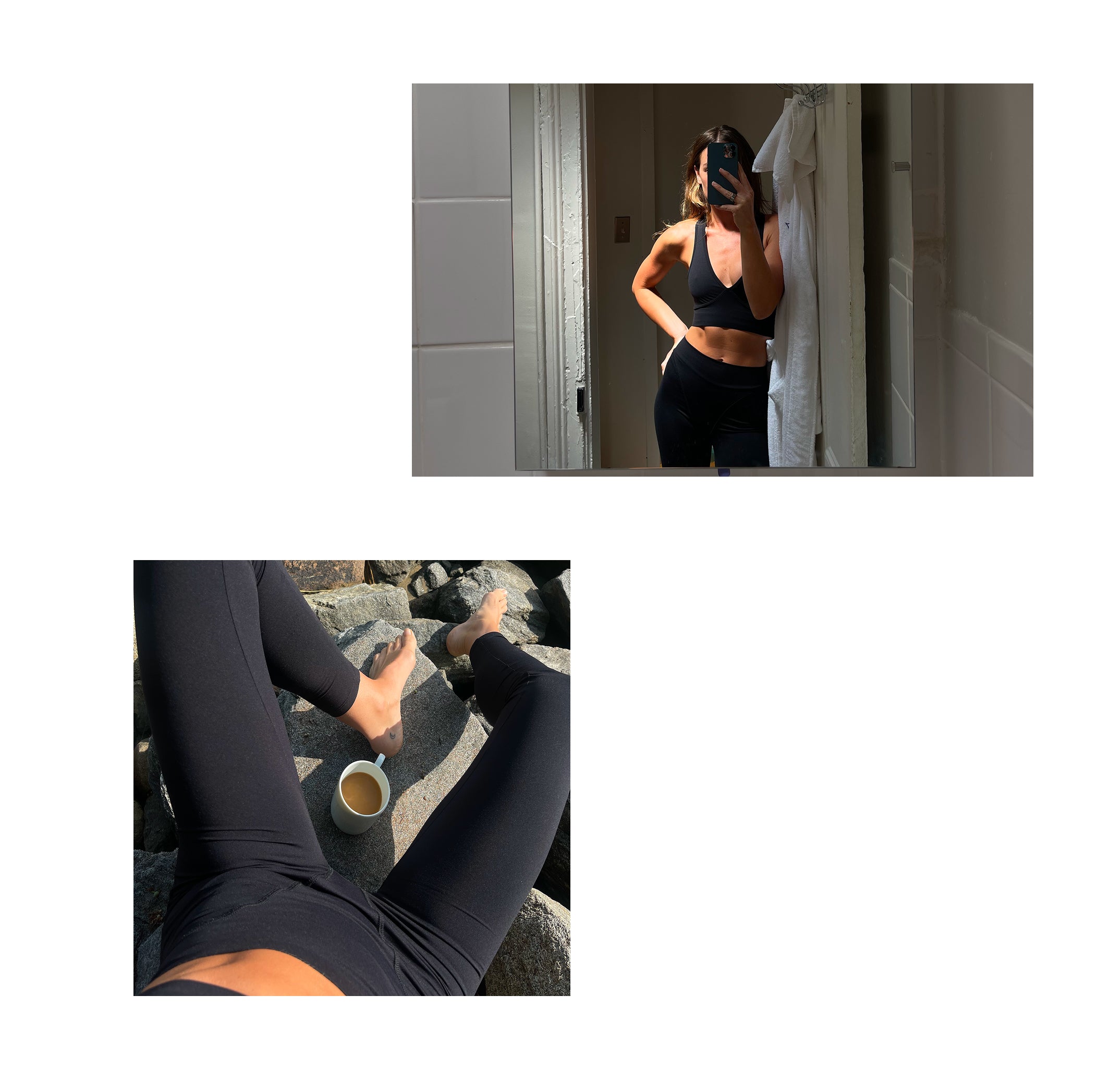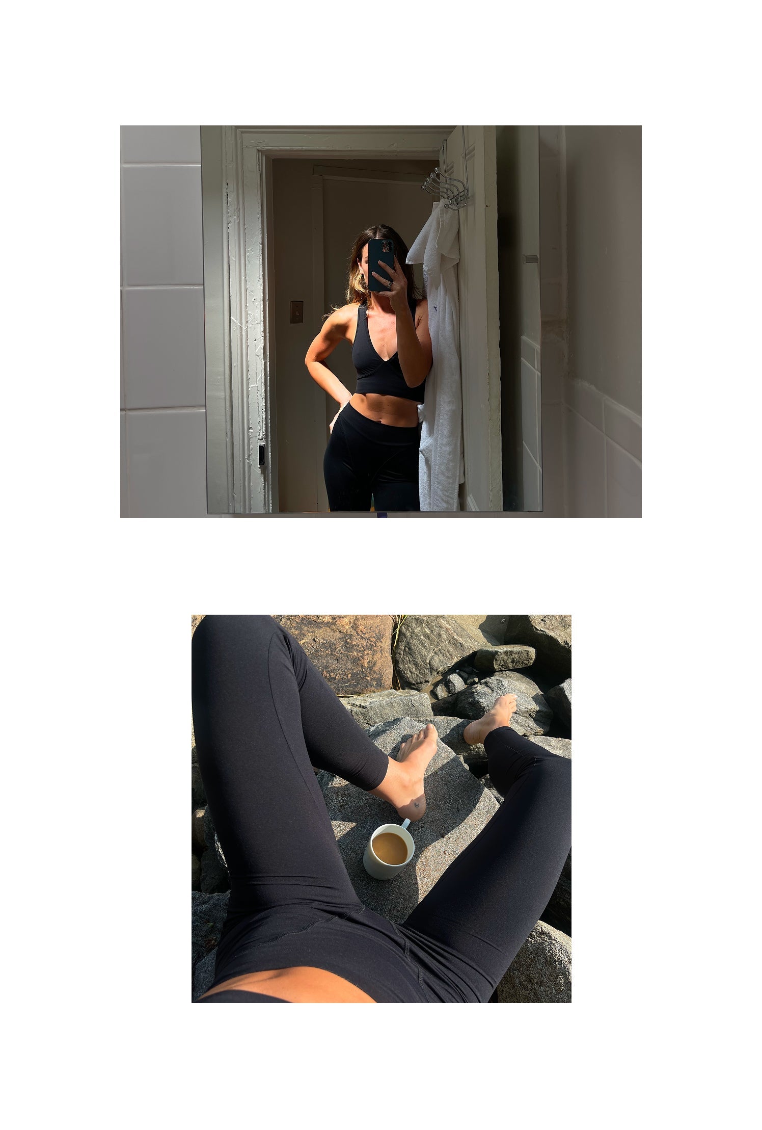 Zoë chose the V Bra in Black and the Accent Legging in Black from Norba.